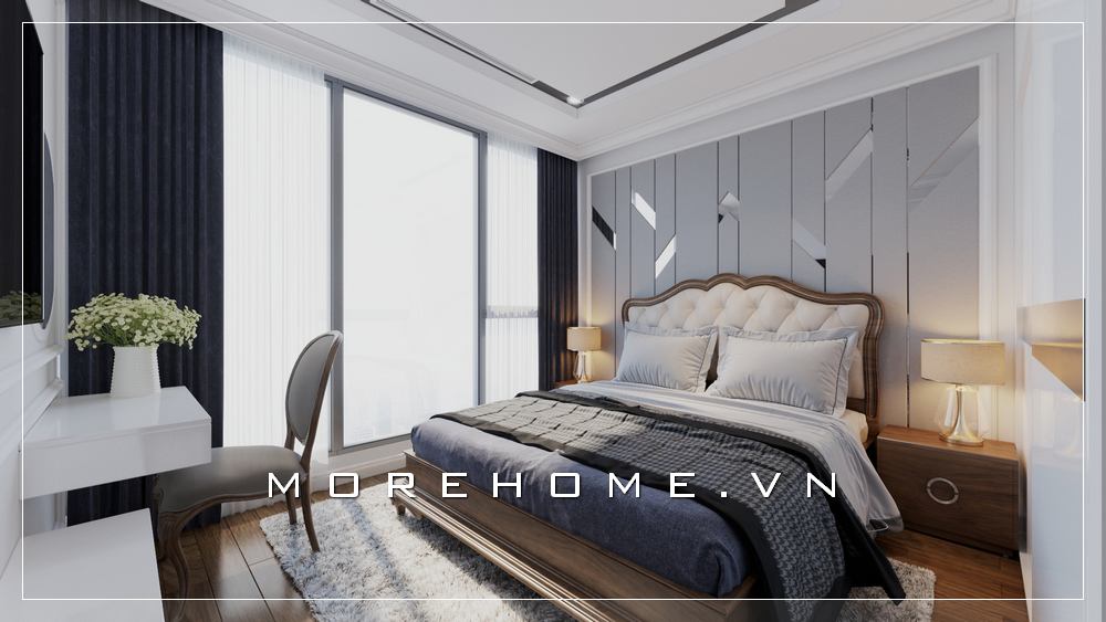 Mẫu thiết kế giường ngủ ngủ chung cư cao cấp phong cách tân cổ điển sang trọng